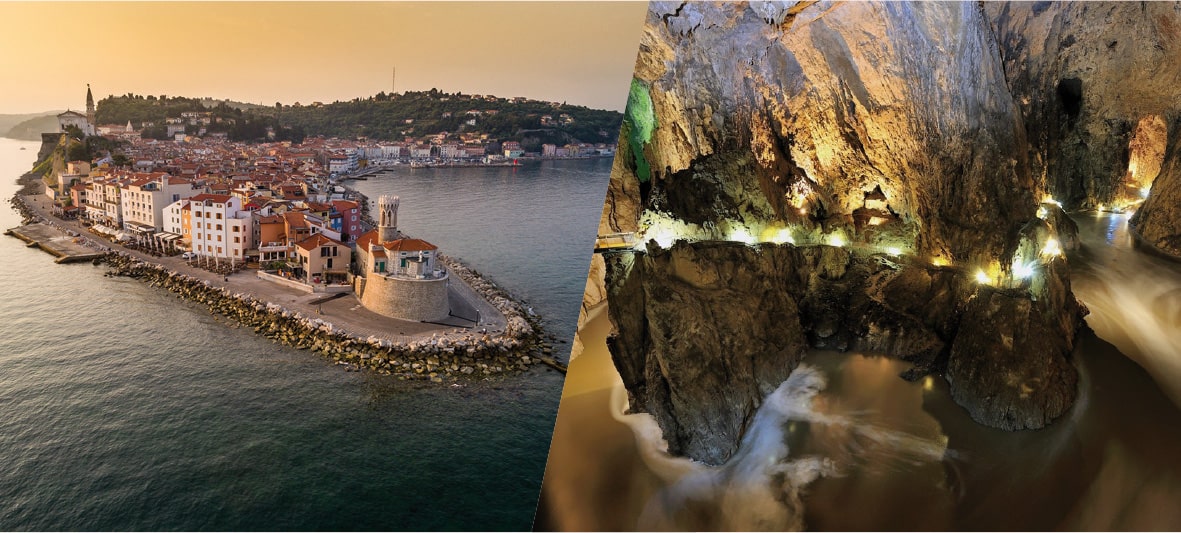 Walk through UNESCO protected Škocjan Caves and admire underground Grand Canyon, the largest underground canyon in the world! After cave experience it is time for soaking up the sun shine & history at Piran – Slovenia’s marble coastal town. Finish your day with absolute spoiling in local restaurant – with prosciutto and local wine. Another Slovenia’s must!
